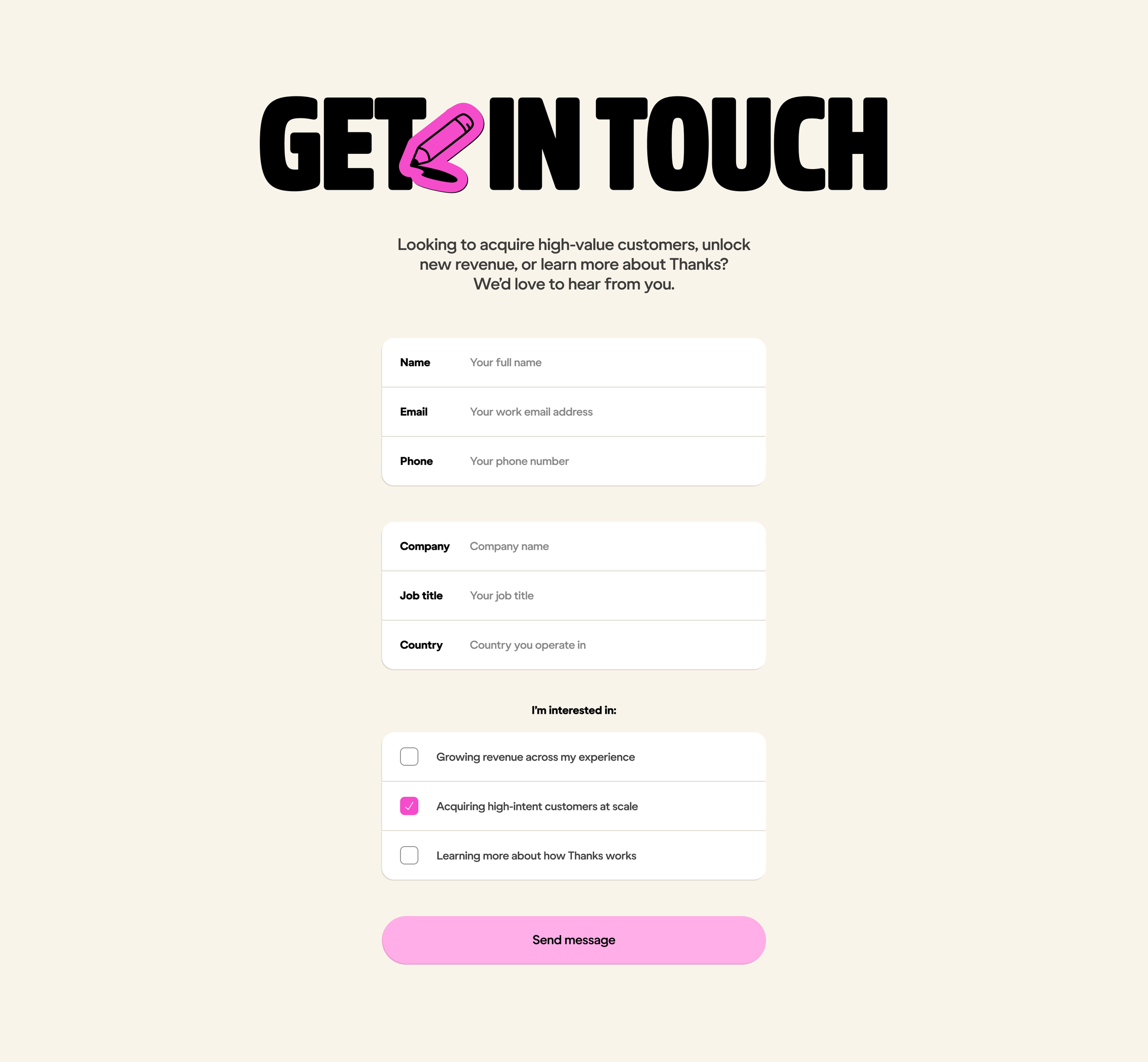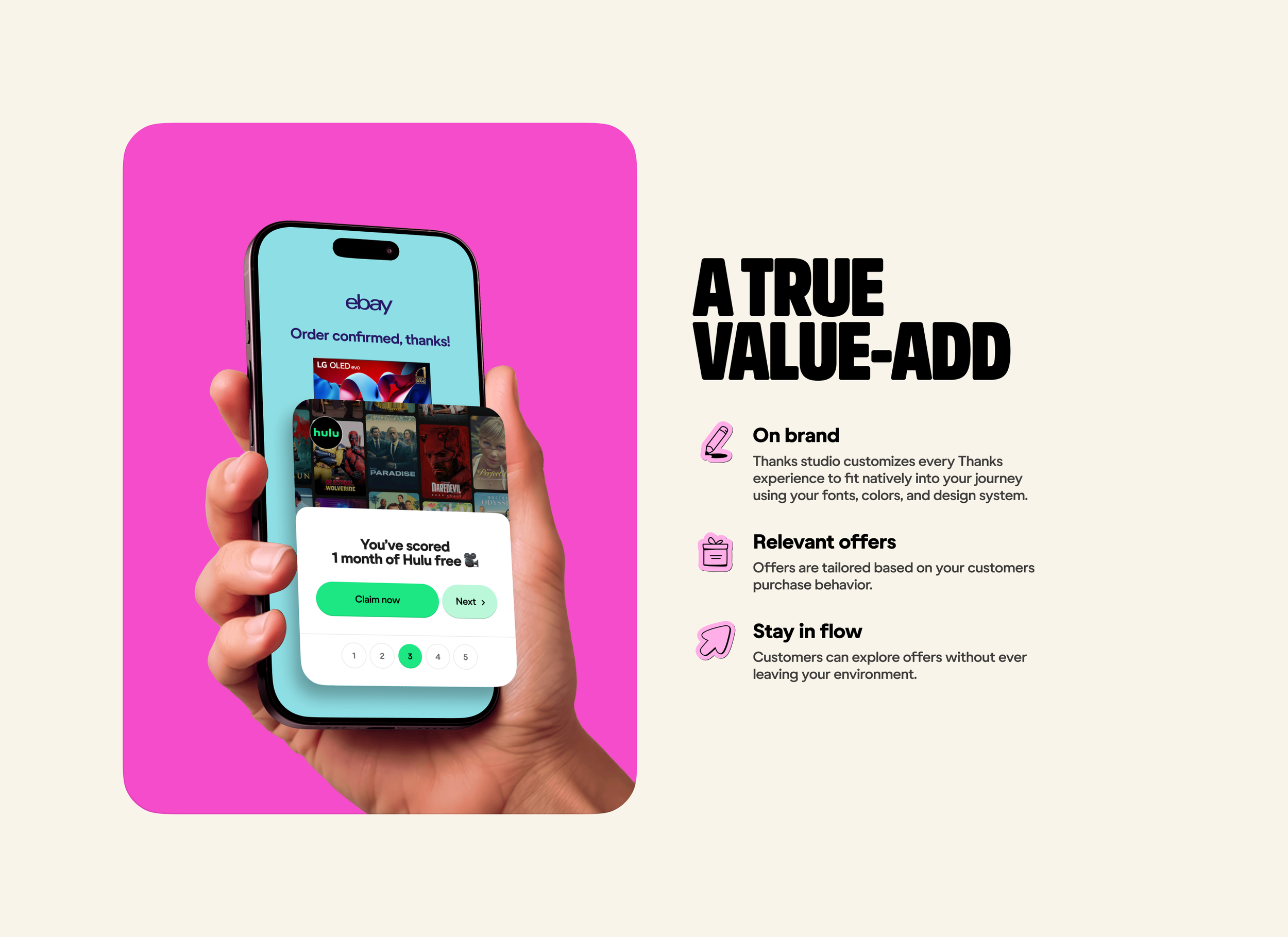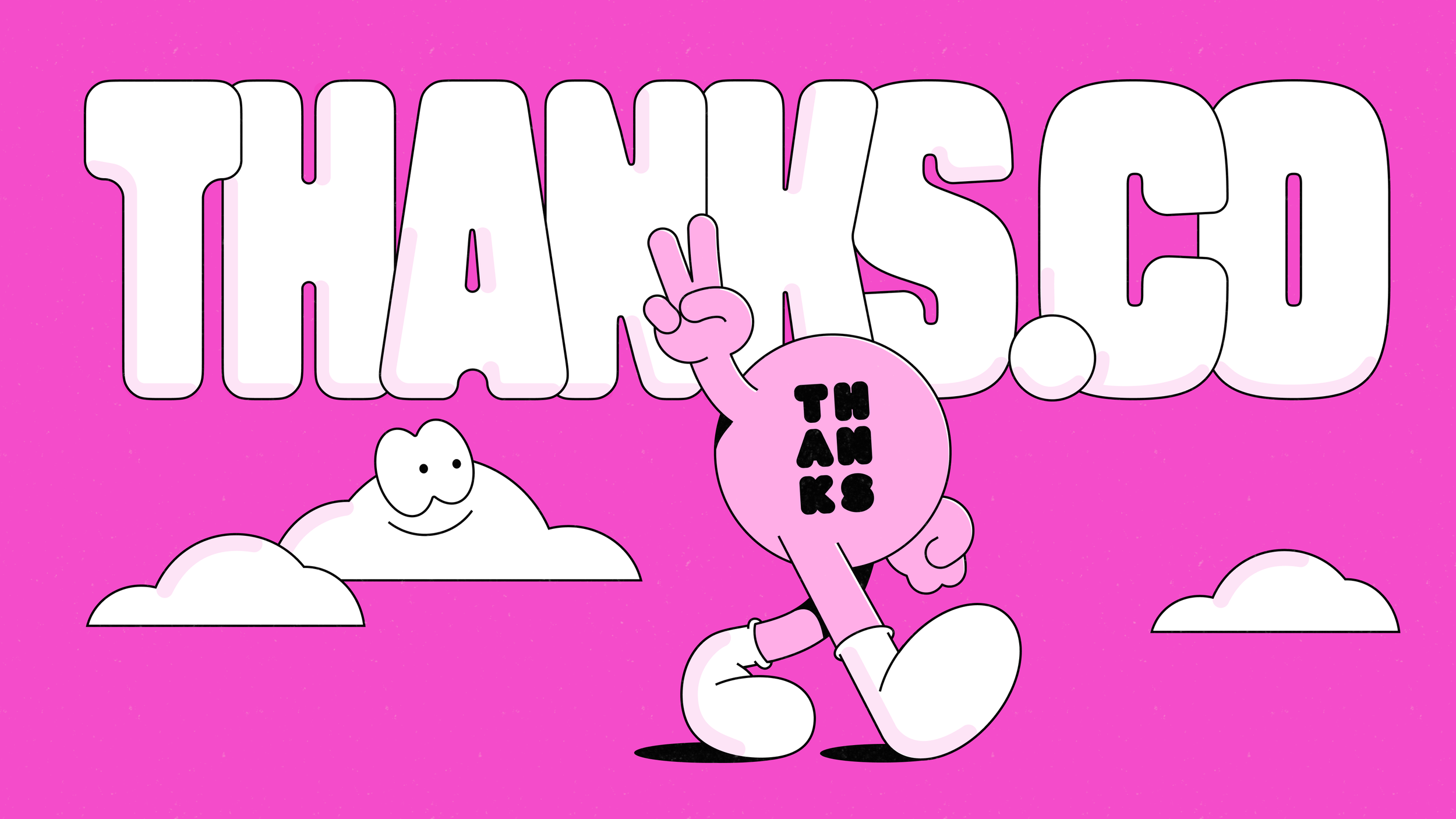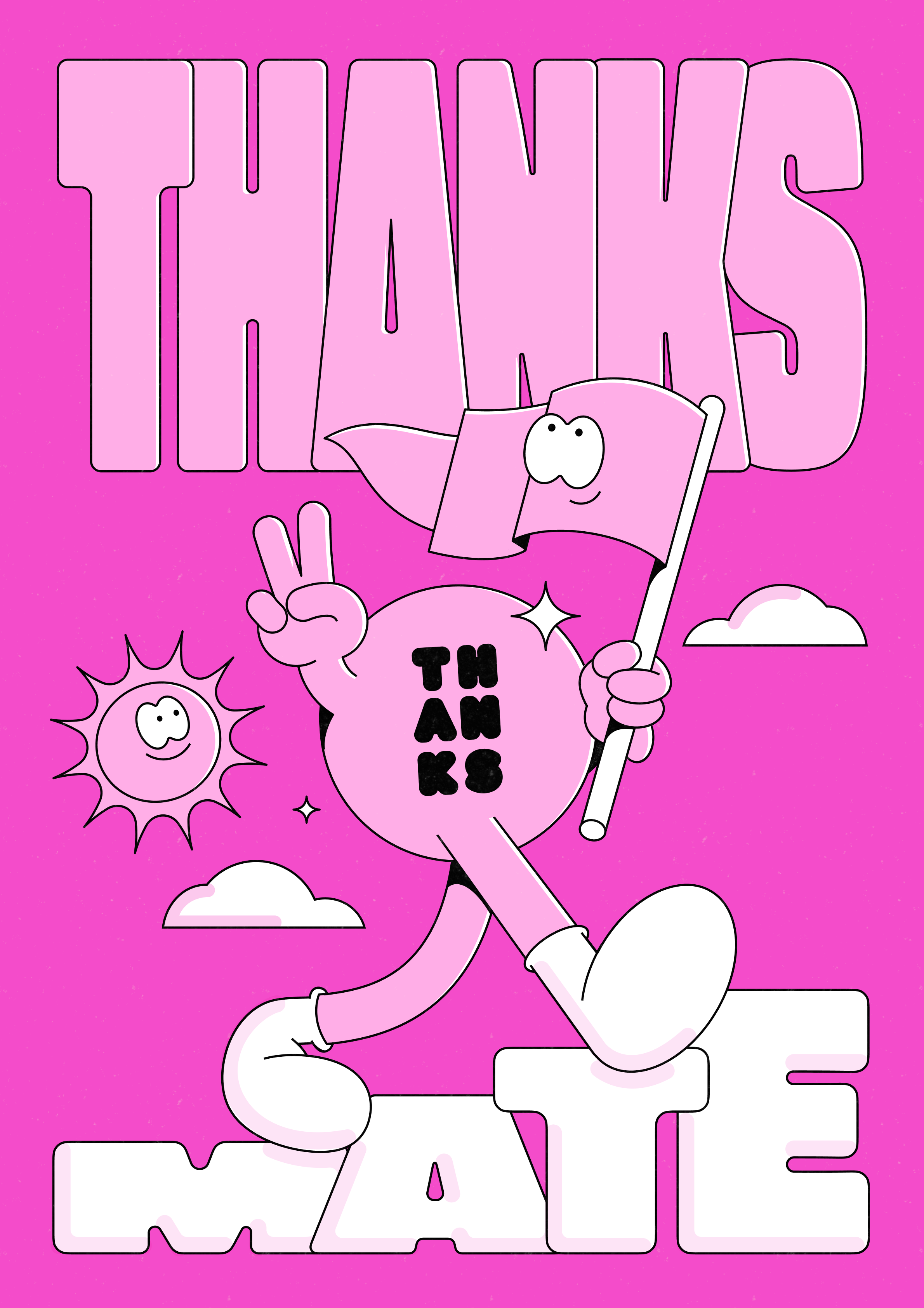 In 2025 I led a rebrand of Thanks, an online post-purchase rewards platform. We built a playful, feel-good brand around some loud core elements – a hot pink colour and ‘Thanks Mate’, a cheerful mascot character.